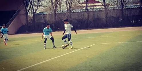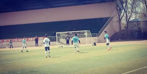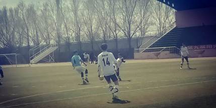 4月9日,在黑龙江财经学院体育场上,我系球员和管理系球员正在准备一场热血沸腾的足球比赛,球员们摩拳擦掌,比赛一触即发。