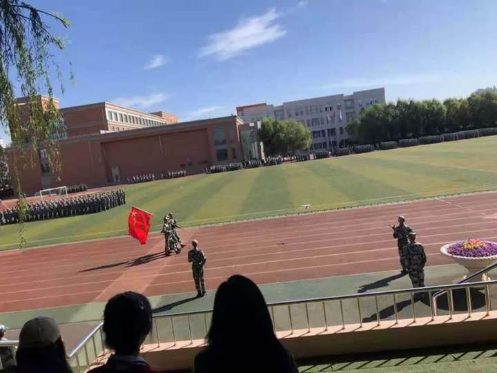 随着总指挥的一声令下,汇演正式开始,学校领导在教官的陪同下检阅了同学们18天的训练成果。