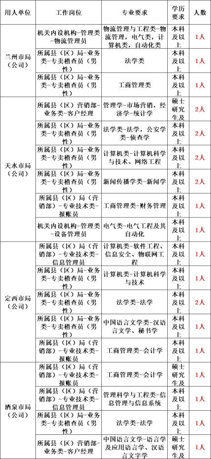 甘肃省烟草专卖局招聘办