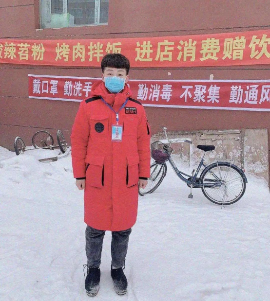 陈寿燚 黑龙江财经学院经济系19级国际商务1班学生 于黑龙江省大兴安岭地区呼玛县进行志愿者服务。
