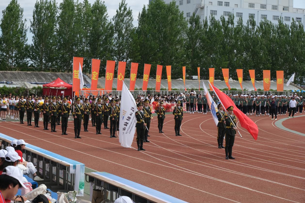 在龙财学子们热情的呐喊声中我校第十七届田径运动会正式拉开帷幕。各学院的前导队、裁判员队伍、师生代表队在内的检阅队伍依次走过主席台,接受大会检阅。检阅人员服装整齐,精神饱满,口号响亮,步伐矫健,展现了我校师生良好的精神风貌。