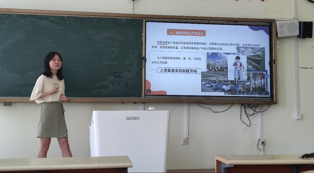 王悦老师本学期主讲政治经济学,本次评课讲授物质资料生产的含义。王悦的讲课内容深入浅出,清晰地解释了物质资料生产的概念,并通过实例和案例进行了生动的说明。