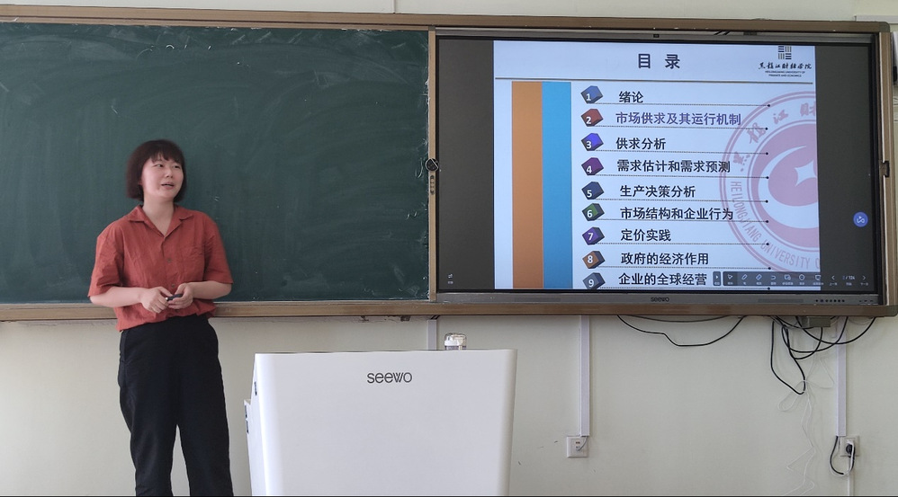 丁蕾老师本学期主讲课程为管理经济学,讲授了市场供求及运行机制。她对这一主题进行了详细的解释,并通过清晰的语言和逻辑结构使学生们更好地理解和掌握相关知识。她的准备工作充分,能够准确把握教学重点和难点,使学生们能够更好地应对学习挑战。