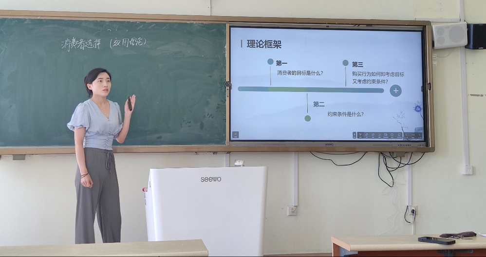 刘美娜老师本学期主讲课程为西方经济学,评课活动选择讲授效用论。她对效用的概念进行了清晰的解释,并通过生动的语言和丰富的表情传达了知识。她的教态自然、亲切,她的语言表达流畅,能够准确传达知识。