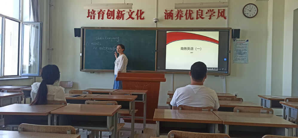国际商务教研室于2023年8月20日在631教室进行了新老师讲新课试讲活动。唐可老师试讲的课程为商务英语(一),唐可老师首先进行说课,然后对UNIT 1 COMPANY课程进行试讲,时长35分钟。