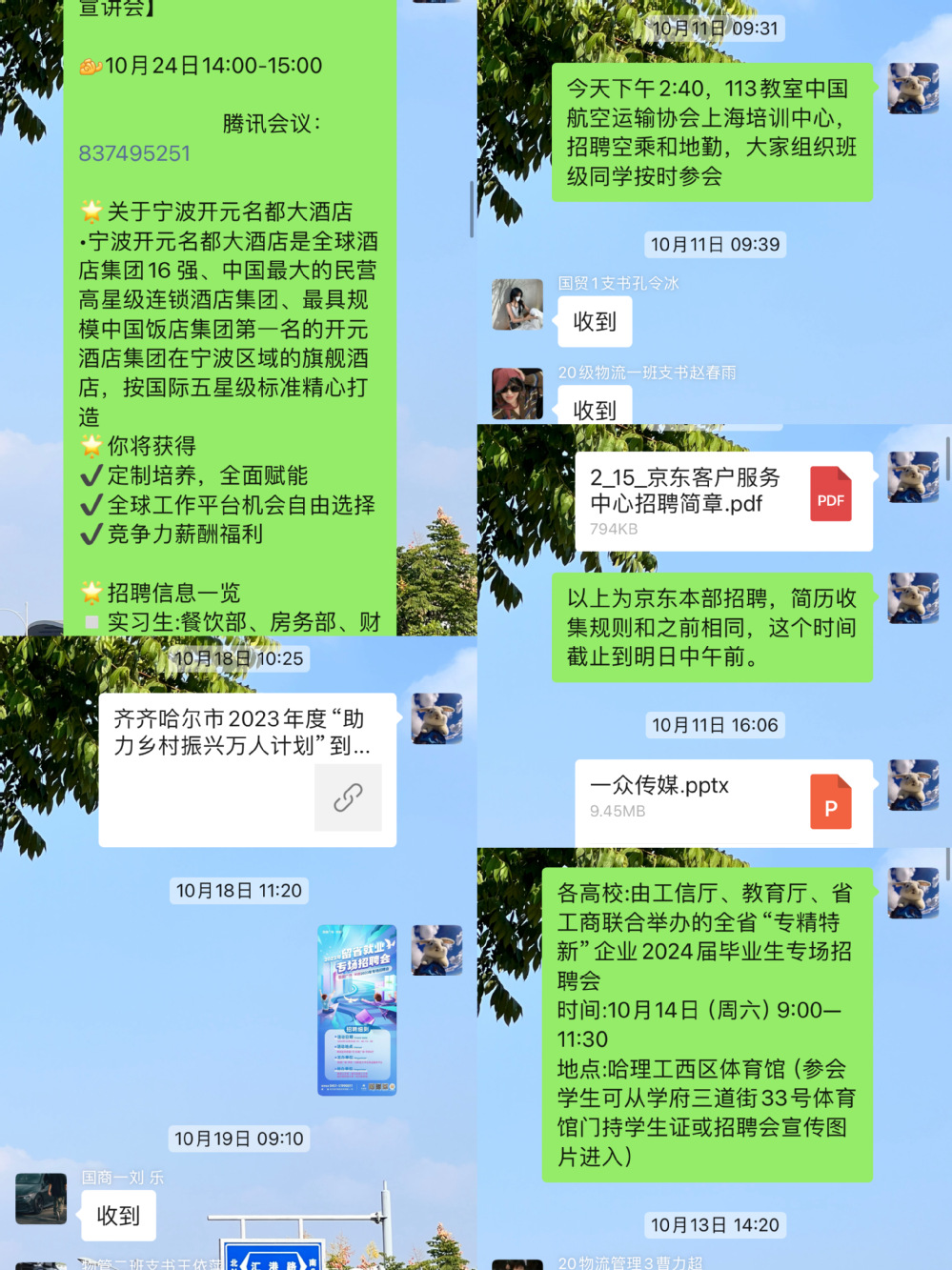 自2023年9月初,学院为毕业生举办就业专场宣讲会52场,其中线上宣讲会24场,线下宣讲会28场。尽力在每次宣讲会的活动中,让同学明白就业关于自己的专业和方向,目的是为进一步加强校企联系与合作,为毕业生求职和用人单位招聘人才搭建平台、提供更好的服务,切实做好学生就业教育,培养新时代高素质技能型人才,经过近一个月的就业宣传,我院13名优秀学生赴义乌进行实习工作,9名同学赴用友公司进行培训实习,3名同学赴天津菜鸟实习,10名同学去往北京京东物流进行实习,实习岗位包含运营、物流仓储、商务PD以及主播等岗位,充分体现就业平台的重要性。