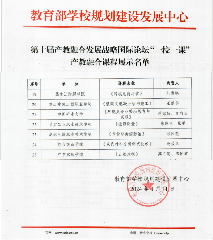 为贯彻落实党的二十大精神,服务教育强国建设,充分发挥高等教育龙头作用,面向战略性新兴产业和未来产业,培养支撑现代化建设的应用型人才,2023年12月14-16日,教育部学校规划建设发展中心联合中华职业教育社、中国职业技术教育学会、应用技术大学(学院)联盟举办第十届产教融合发展战略国际论坛,组织“一校一课”产教融合示范课程展示活动,通过线上展播的方式分享各高校在产教融合课程改革创新方面成功经验和创新成果。