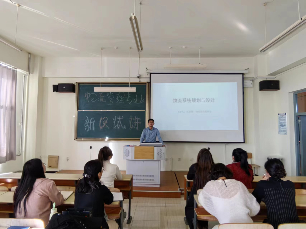 第一位试讲老师是高英腾老师,试讲的课程为《物流系统规划与设计》,高英腾老师对第一章物流系统的概念、特点进行试讲,高老师教学设计层次分明,重难点突出,充分展示了他的基本功。