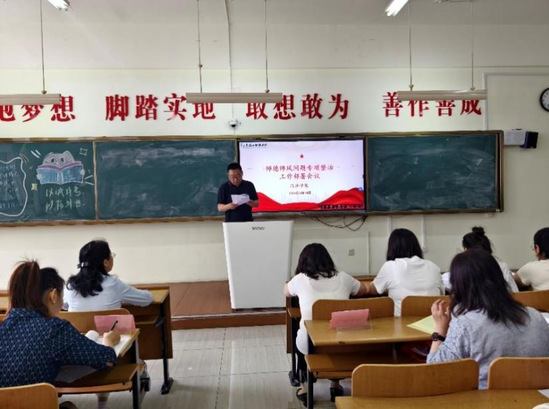 会议上于水书记传达了《黑龙江财经学院关于开展师德师风问题专项整治工作方案(修订)》的通知,并带领经济学院全体教职员工深入解读了整治的主要内容和师德师风建设负面清单。