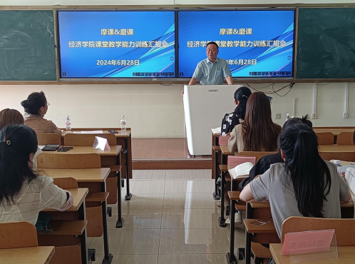 6月28日下午,为我院教师搭建学习、提升和交流的平台,推动我院教育教学质量迈上新台阶,经济学院于尚学楼639室召开了“摩课&磨课”课堂教学能力训练汇报会。经济学院院长董雪梅、副院长刘世鹏、督导赵庆日老师以及全院教职工参加会议,会议由刘世鹏副院长主持。