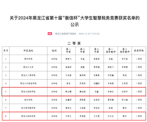 竞赛中,财务管理专业学生们以3人小组为单位,分别承担增值税申报合规岗、企税申报合规岗、个税申报合规岗,涉及全面数字化的电子发票开具、一般纳税人增值税及附加税费申报、查账征收企业所得税年度汇算清缴、个人所得税预扣预缴申报等多个方面。李春红和边泽宇指导的韩云鹏、雍旭瑶、刘鑫“智税创行”代表队,以及许左言和韩宇指导的方思又、李易聪、王艺萌“税赢有道”代表队均荣获省赛二等奖的成绩。