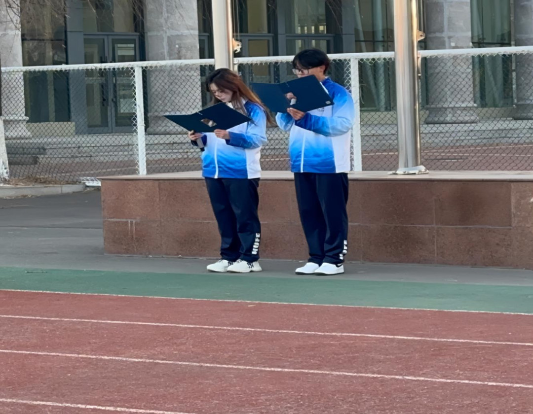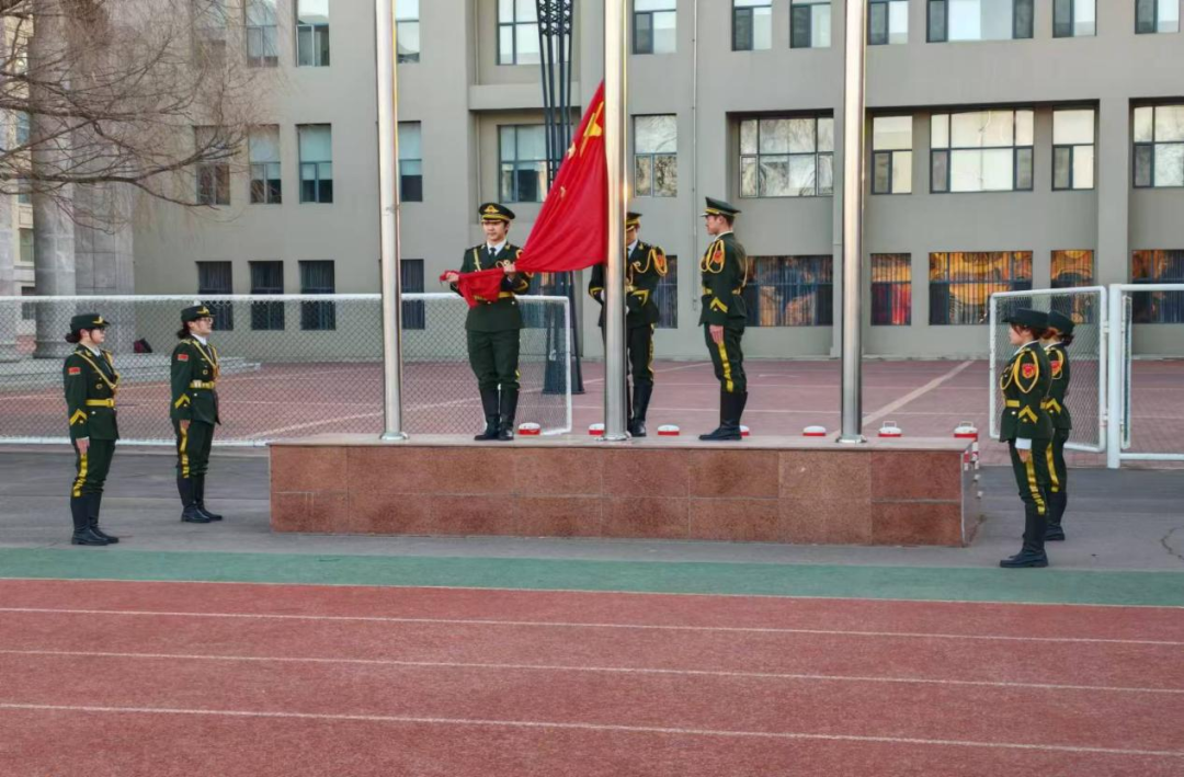早上7点在操场准时进行升旗仪式,国歌奏响,国旗护卫队在升旗台前将国旗升起,大家庄严肃穆的行注目礼。那一刻,所有人的目光都聚焦在那面缓缓升起的国旗上。大家心中满是对祖国的热爱与崇敬之情,随着国旗一点点升高,这种情感也愈发浓烈,直至国旗飘扬在旗杆顶端,在蓝天的映衬下格外鲜艳夺目。