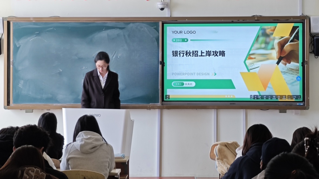 中共党员,2021级财务管理专业二班吴禹杭同学,她结合自身成功经历,向学弟学妹们分享银行秋招上岸攻略。她告诫学弟学妹们们一份精心设计的简历是求职的“敲门砖”,在制作简历时,要学会将个人优势、实习经历与银行岗位需求紧密结合,突出与岗位的匹配度。她深知毕业生在求职路上的迷茫,作为党员,她主动担当,用实际行动践行“为群众办实事”,她以党员的责任感和使命感,鼓励大家深入了解银行行业发展趋势与岗位特点,避免盲目投递,做到有的放矢。