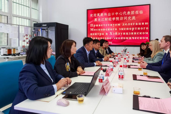 5月19日,俄罗斯代表团莫斯科出口中心副总经理娜杰日达·亚历山德罗夫娜、国际合作司商务代表团处处长加萨诺娃·玛丽亚姆·达格别耶夫娜、莫斯科市创业与创新发展局出口促进处副处长谢苗诺夫·安德烈·阿里耶维奇一行在黑龙江颂文国际贸易有限公司杜文拓总经理的陪同下来我校参观和交流。