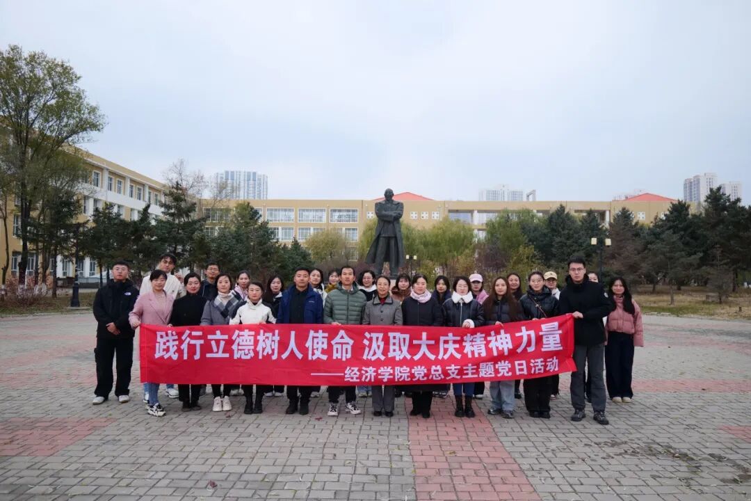 为强化党员干部理想信念教育,深化党性修养。2025年11月1日,经济学院党总支组织部分教师党员,奔赴大庆,开展主题党日活动。全体党员先后参观了铁人王进喜纪念馆、大庆市博物馆、大庆市城市规划馆、北大荒精神展示馆和黑龙江八一农垦大学校史馆,并在王震将军像现场聆听了党课。在历史的回响与现实的观照中,接受了一次深刻的思想淬炼和精神洗礼。