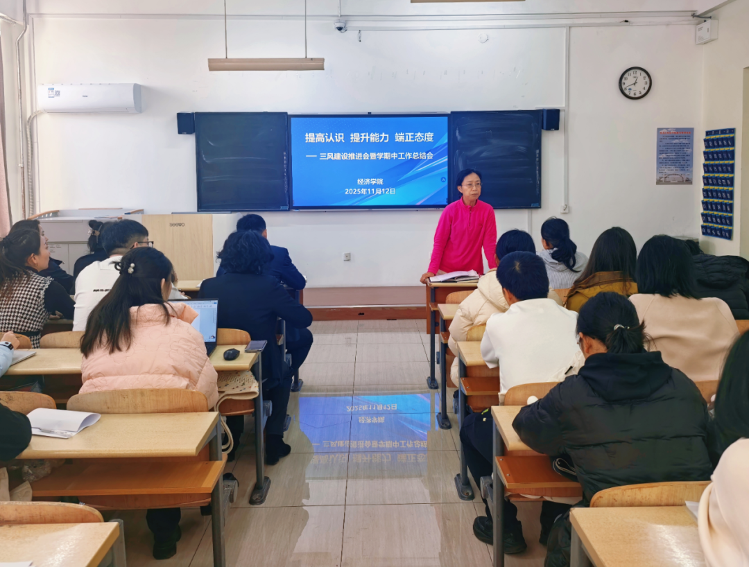 11月12日,为持续深化学风、教风、作风“三风建设”,全面梳理学期中教学科研工作成效与不足,明确下一阶段工作重点,经济学院在尚学楼614召开了提高认识•提升能力•端正态度 ——三风建设推进会暨学期中工作总结会。会议由学院院长董雪梅主持,王超书记、全体教师及辅导员参加了会议。