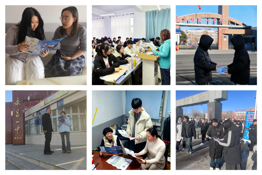 在招生宣传工作准备阶段,学院将线下实地宣讲作为精准对接优质生源的重要抓手,组织由56名师生共同组成的招生宣传队伍,在寒假期间分赴齐齐哈尔市各区县、甘肃、湖南省等多所重点中学开展面对面、沉浸式的招生宣传活动,与广大考生及家长零距离沟通、心贴心交流。每到一所中学,宣传团队都提前对接、精心准备,通过集中宣讲、招生宣传手册发放、现场咨询、互动交流等形式,全方位、多角度介绍学校办学实力与培养特色,让考生和家长直观感受学校的办学优势与育人氛围。